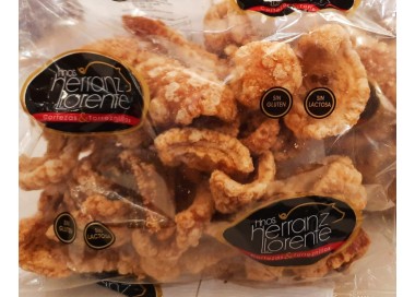 Ingredientes: Panceta de cerdo, sal, pimentón y conservador (E-250) El producto se compone de 4/5 torreznos con un peso de 470 gr