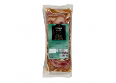 Ingredientes : Oreja de cerdo, agua, sal, gelatina,especias,aroma de humo,azúcares,conservante (E-250), antioxidante (E-301). Sin gluten y sin lactosa.