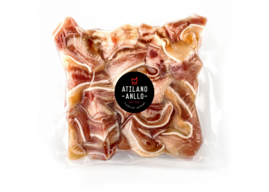Ingredientes : Oreja de cerdo(97.5%),sal, conservador (E-250),corrector de la acidez(E-262 y E-331), especias y antioxidantes(E-301). Puede contener trazas de pistacho.